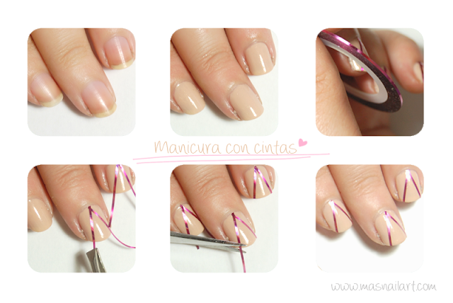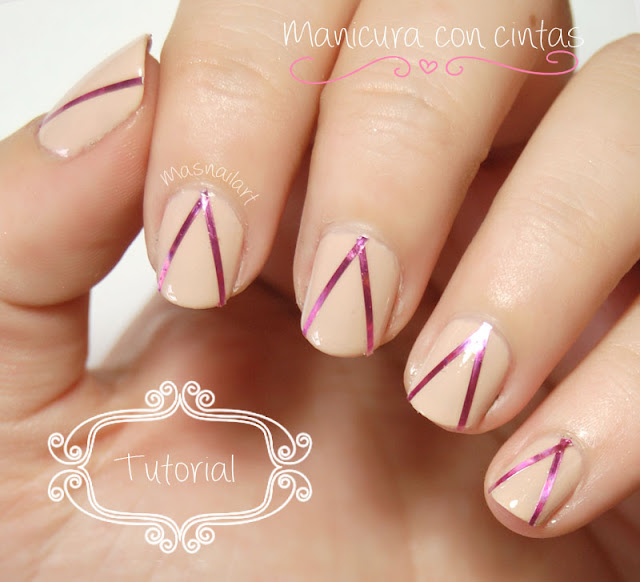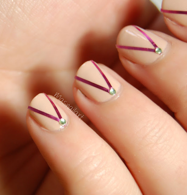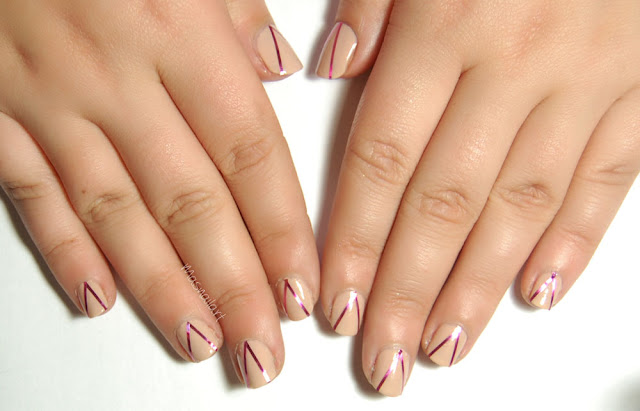 3. Pinté dos líneas de rosa violáceo con un pincel de nail art.