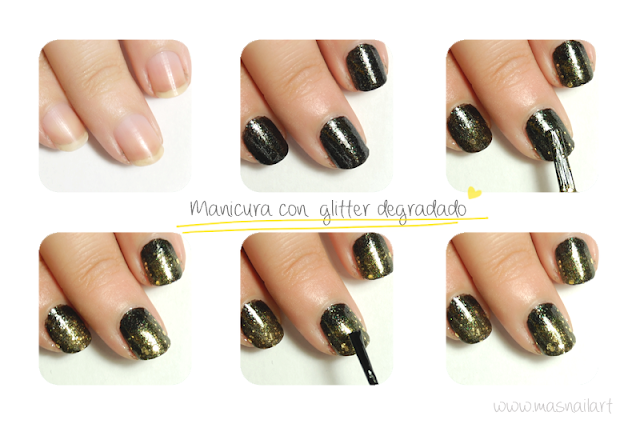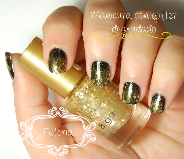 Ahora os enseño la manicura con un toque de glitter :) Sólo hay que aplicarlo por fuera del borde rosa.